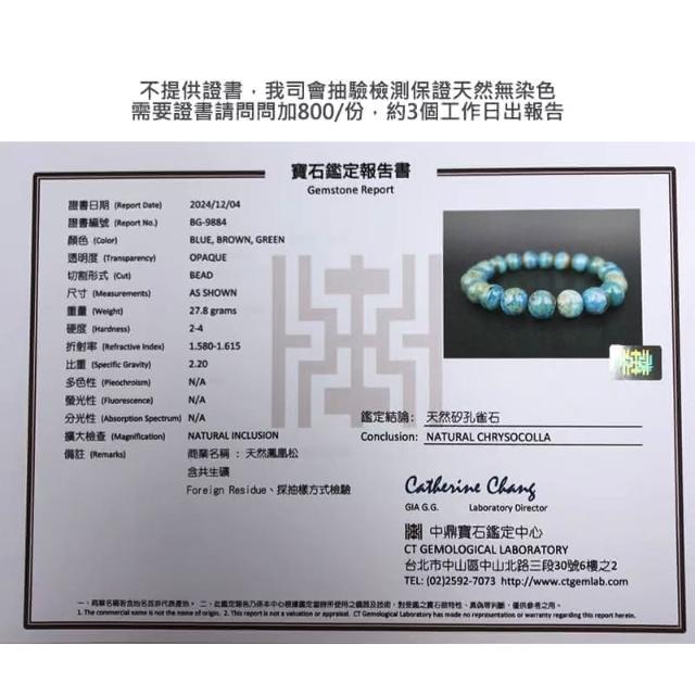 Paiya 派亞天然老礦美國鳳凰松手鏈男女款藍銅礦石圓珠手串簡約首飾品有台灣實驗室檢測過