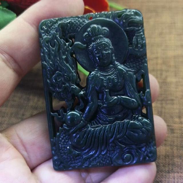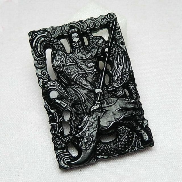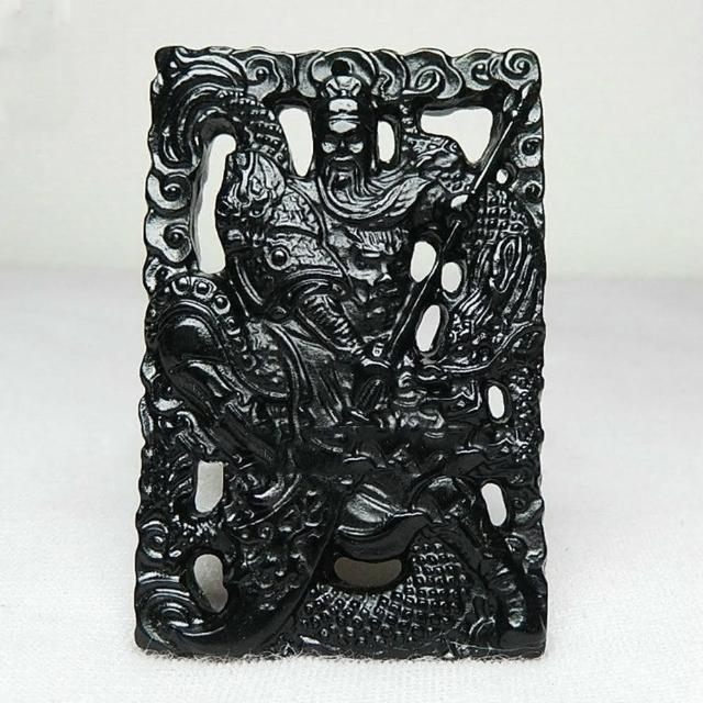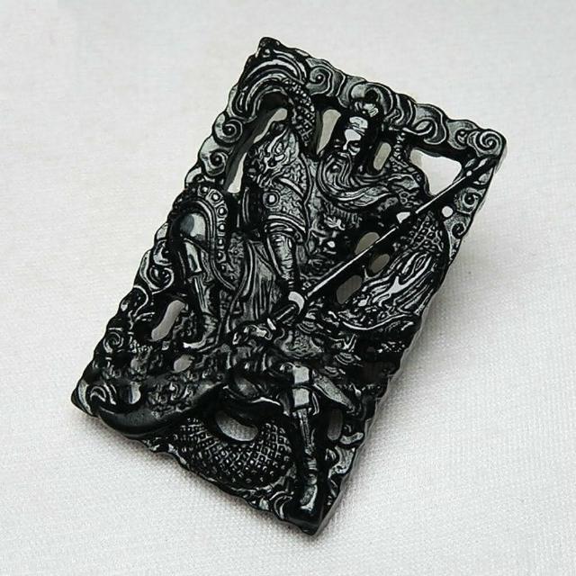 Paiya 派亞墨玉玉石藥王石新疆墨玉關公挂件墨綠蛇紋石玉镂空吊墜玉牌子送禮好物/交換禮物