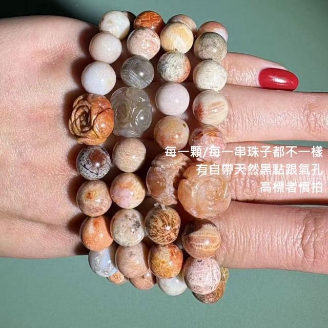 Paiya 派亞原創設計6-9MM獨一無二的美天然珊瑚玉菊花玉手串手鏈有機寶石