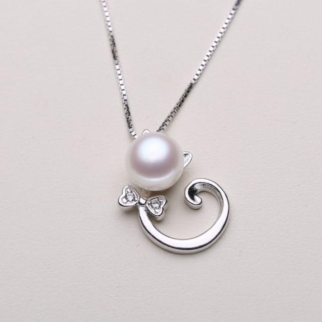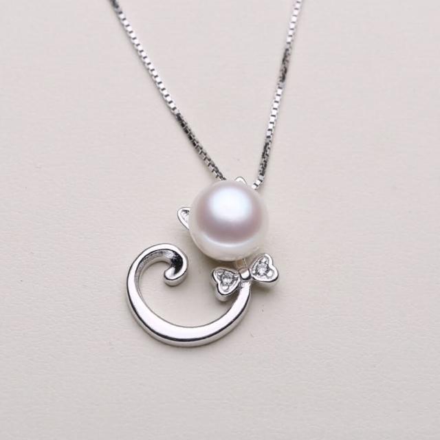 Paiya 派亞s925銀可愛kt小貓吊墜韓版淡水珍珠項鏈交換禮物/過年送禮