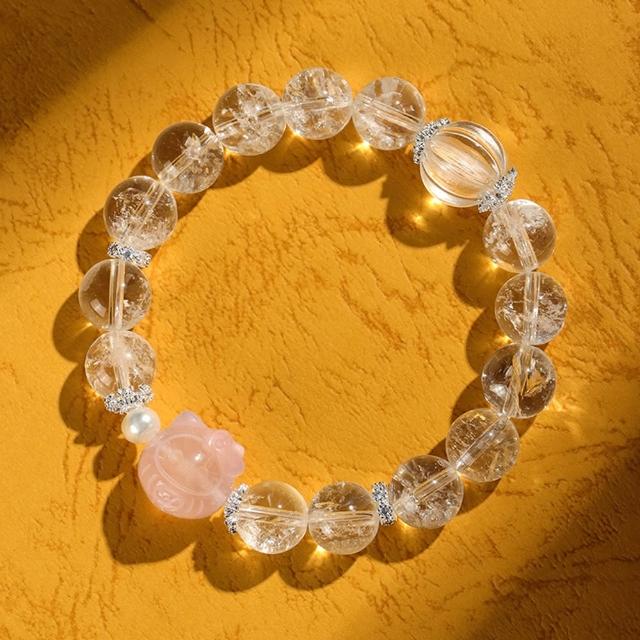 Paiya 派亞白阿賽白水晶南瓜珠手鏈女清新甜美粉晶星星貔貅手串手飾