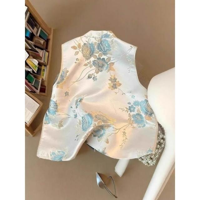Paiya 派亞新中式重工刺繡織錦提花立領馬甲外套女春季國風盤扣馬夾背心上衣M-3XL可穿