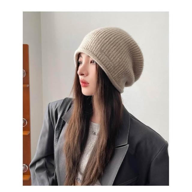 達賀尊爵爆款羊毛絨帽子女秋冬季慵懶風加厚毛線帽大頭圍防寒護耳帽保暖針織帽