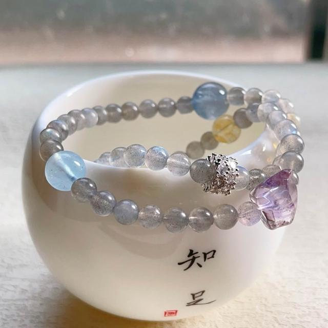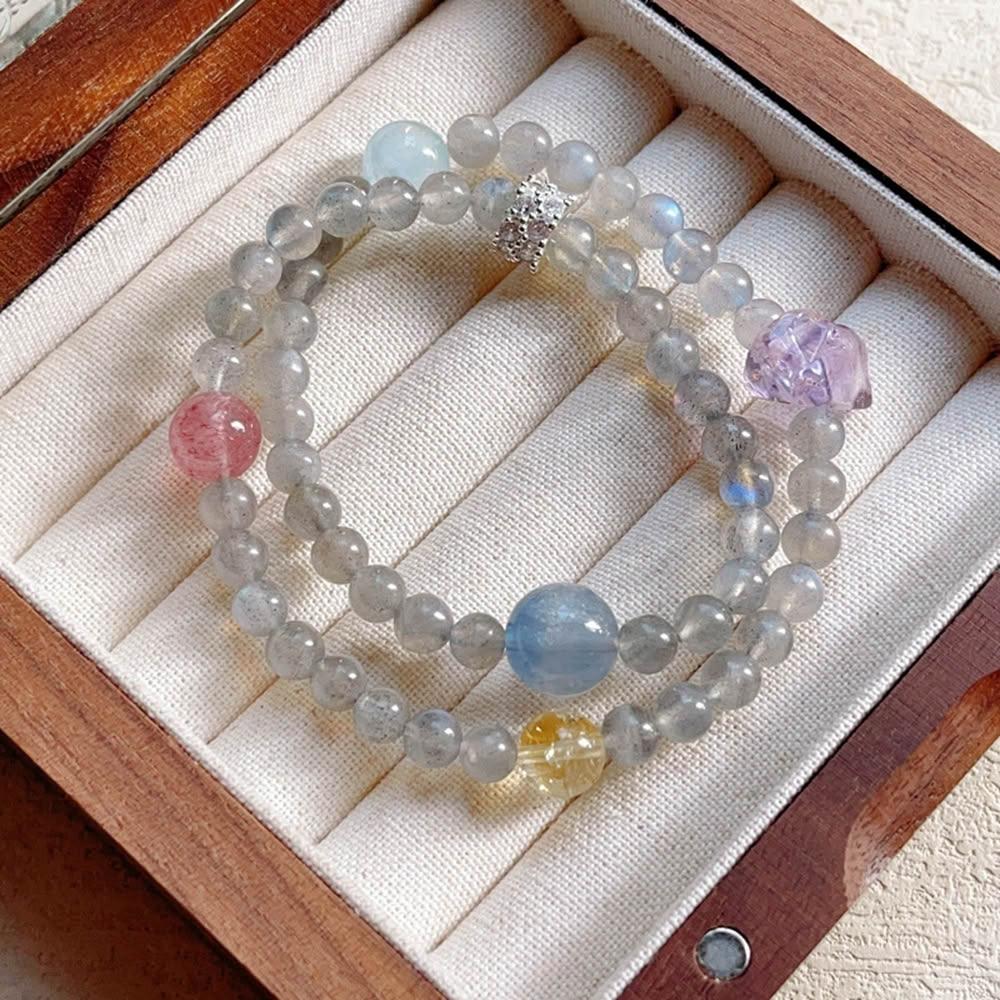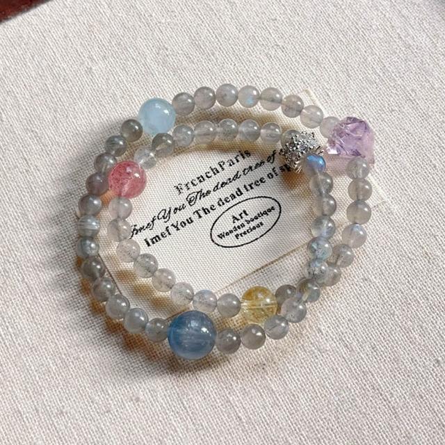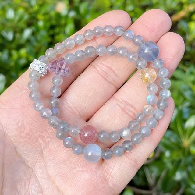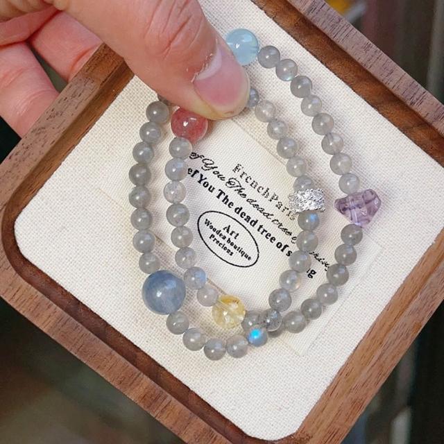 Paiya 派亞灰月光石手鏈女 金髮晶草莓晶海藍寶雙圈手串小衆設計禮物送禮好物/交換禮物