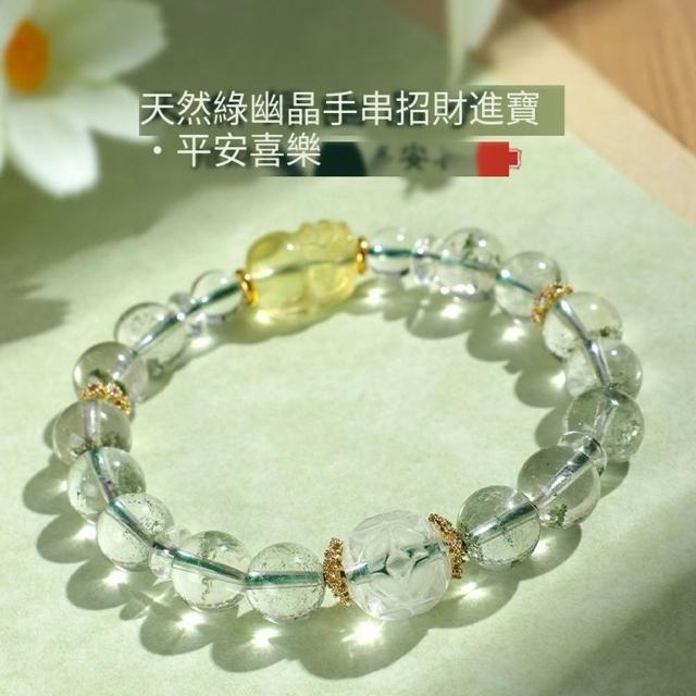 Paiya 派亞綠幽靈綠水晶貔貅串珠手鏈女時尚高級感招財黃水晶貔貅手串送禮好物/交換禮物