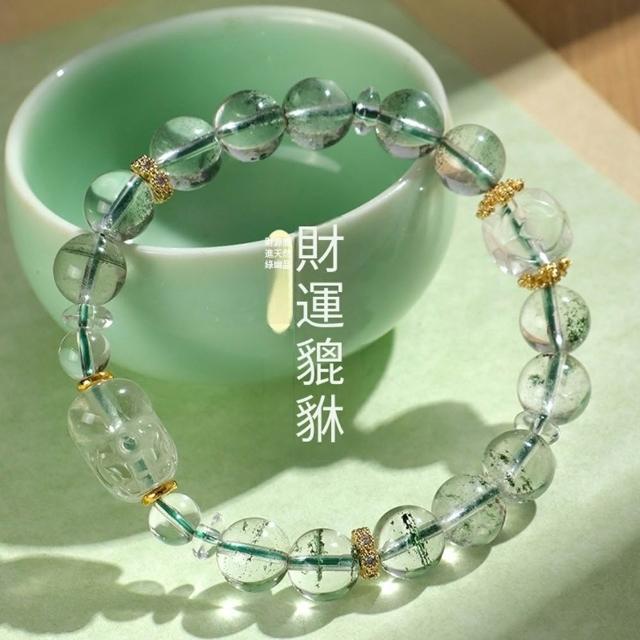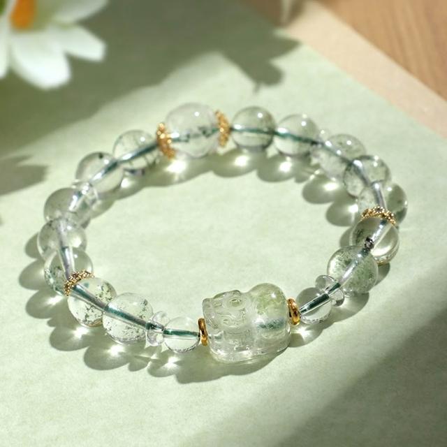 Paiya 派亞綠幽靈綠水晶貔貅串珠手鏈女時尚高級感招財黃水晶貔貅手串送禮好物/交換禮物
