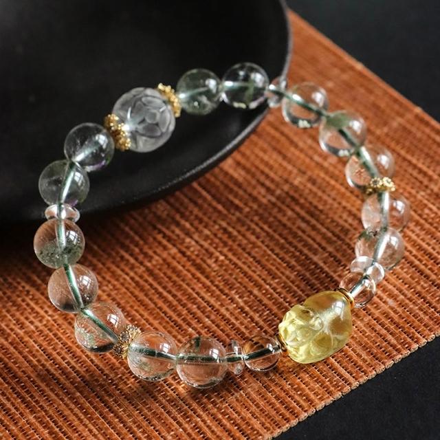 Paiya 派亞綠幽靈綠水晶貔貅串珠手鏈女時尚高級感招財黃水晶貔貅手串送禮好物/交換禮物