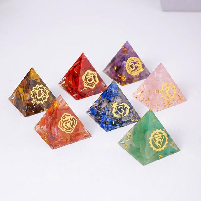 Paiya 派亞3CM天然水晶碎石滴膠樹脂金字塔水晶能量塔家居裝飾擺件