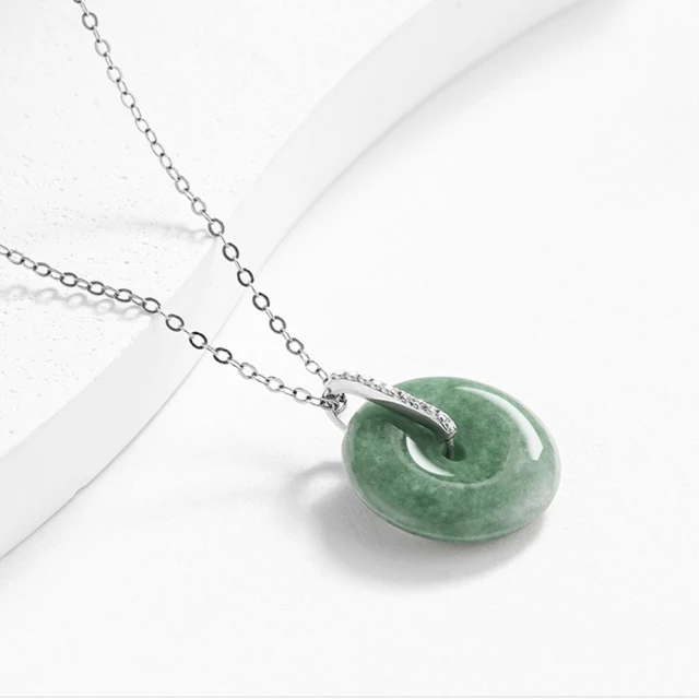 Paiya 派亞翡翠A貨豆綠小平安扣吊墜S925銀鑲冰種玉石挂件項鏈女款交換禮物/送禮