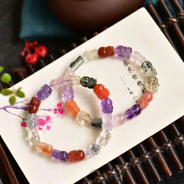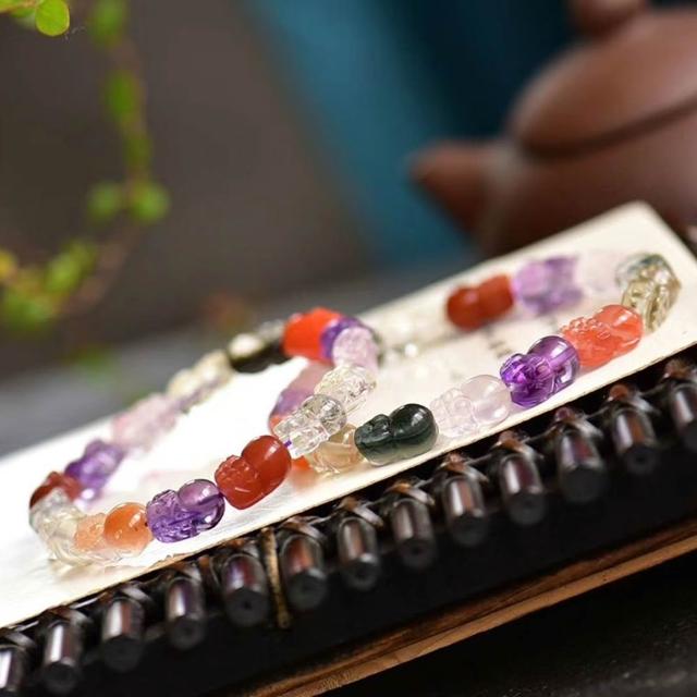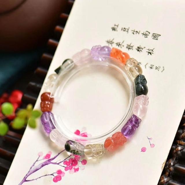 Paiya 派亞精工雕刻天然水晶多寶貔貅手鏈 髮晶幽靈招財貔貅手串