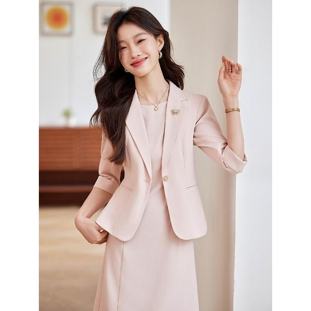 Paiya 派亞黃色新款職場通勤連衣裙輕奢感正式場合中袖兩件套氣質西裝套裝女S-4XL可穿