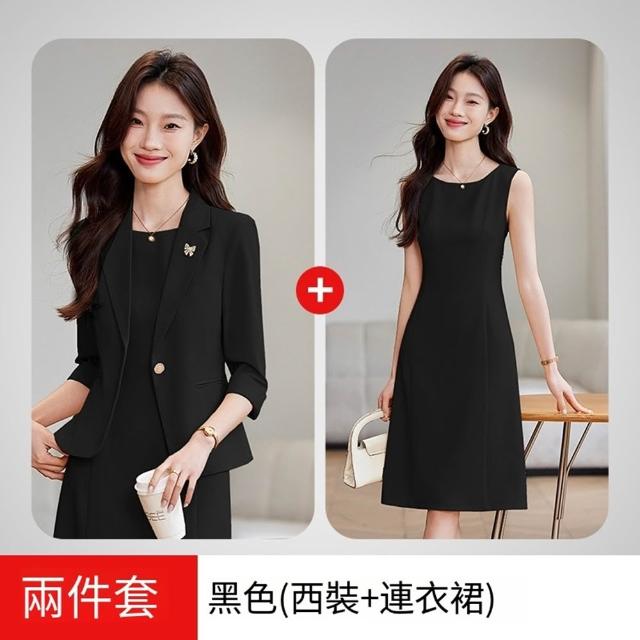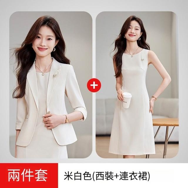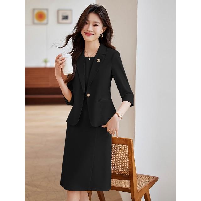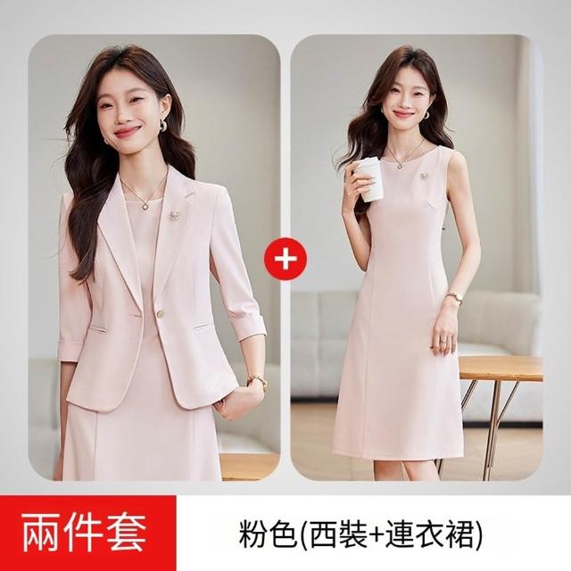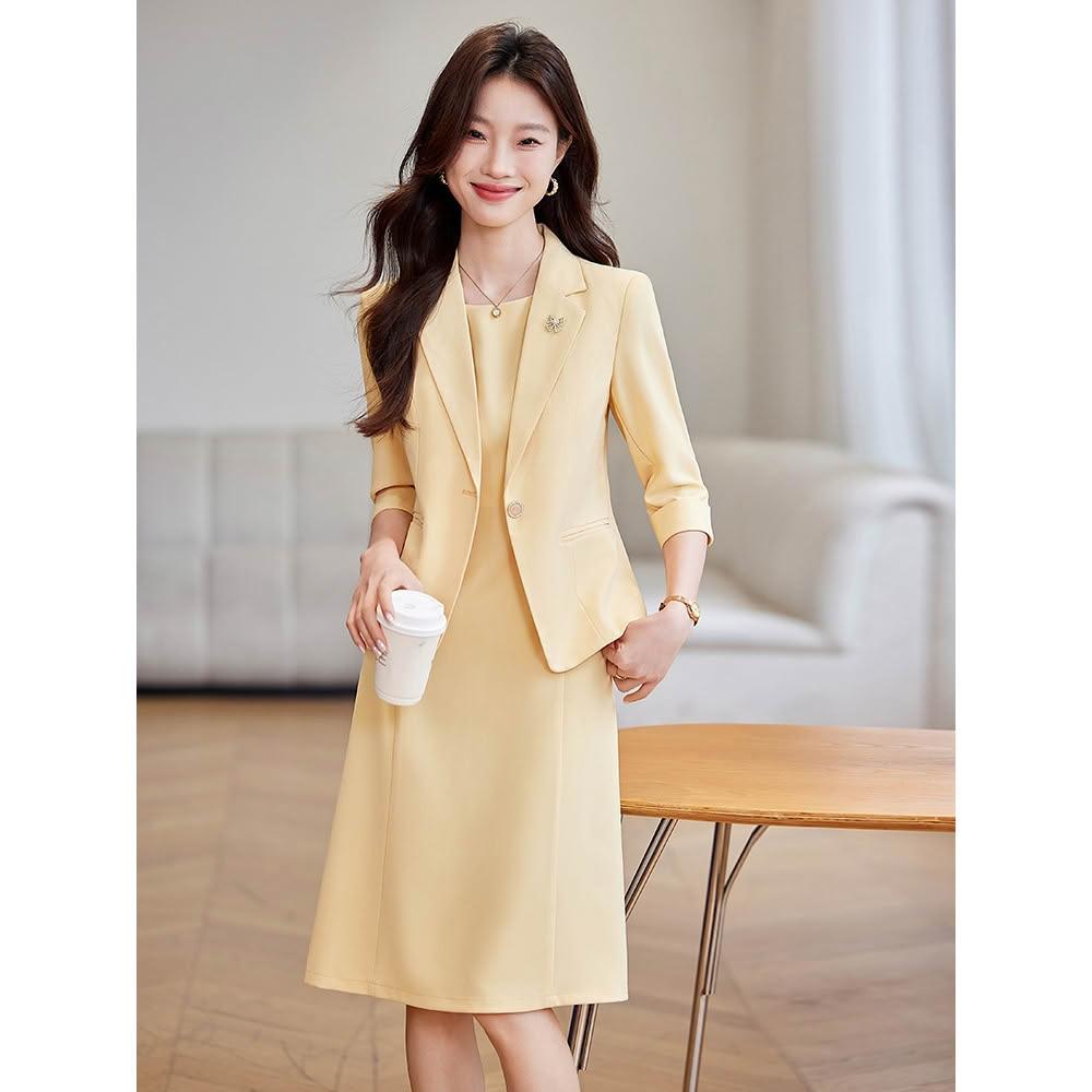 Paiya 派亞黃色新款職場通勤連衣裙輕奢感正式場合中袖兩件套氣質西裝套裝女S-4XL可穿