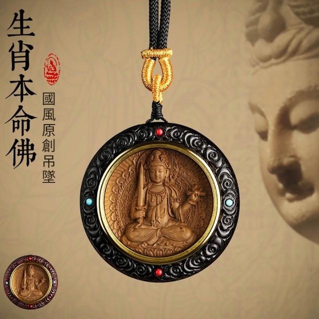Paiya 派亞本命佛圓牌吊墜十二生肖守護神項鏈男女普賢菩薩黑小葉紫檀綠度母送禮好物/交換禮物