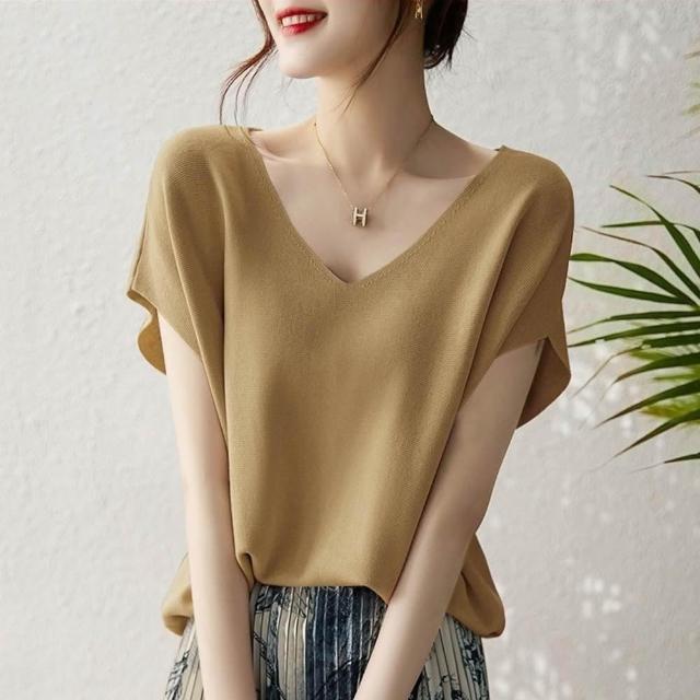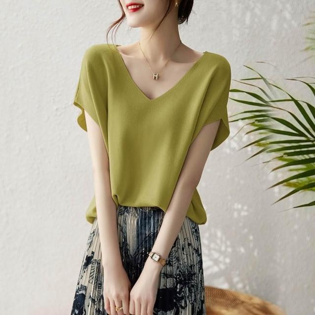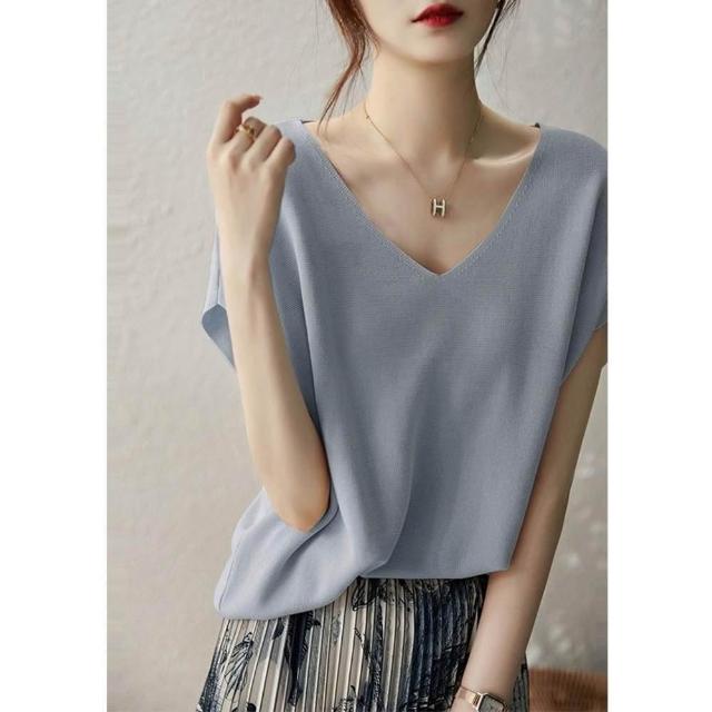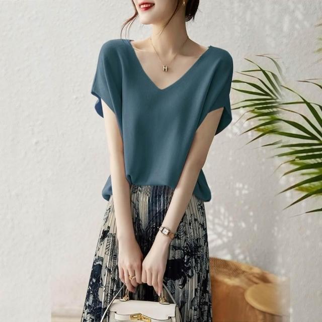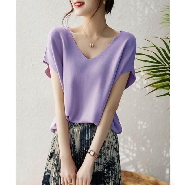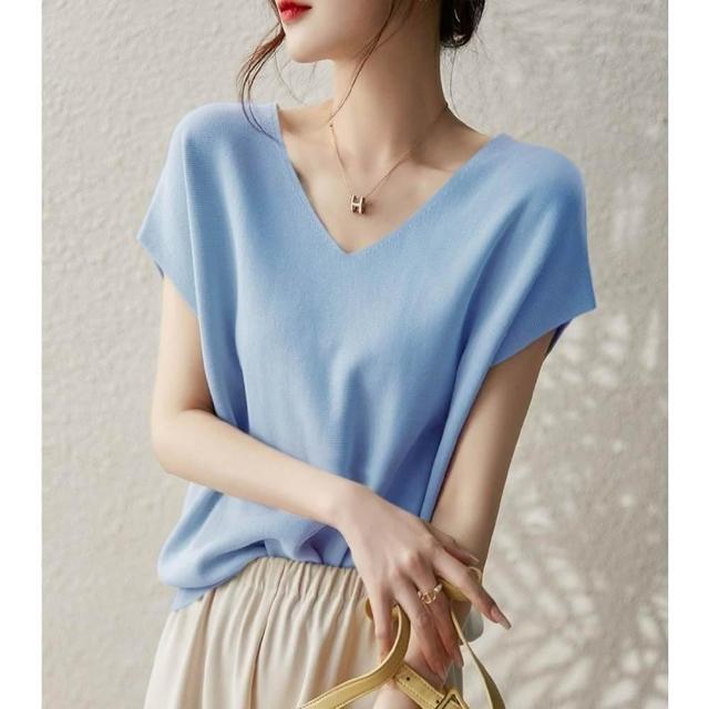 Paiya 派亞爆款夏乾爽醋酸棉蝙蝠袖薄款冰絲修身顯瘦洋氣針織衫S-2XL可穿