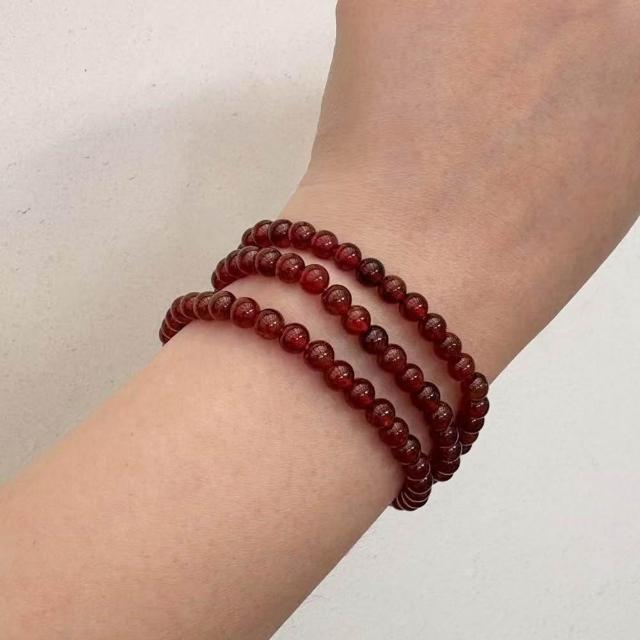 Paiya 派亞5MM澄石榴石澄紅石榴冰透乾淨深艷色手鏈手串女人石水晶飾品三圈可當項鍊
