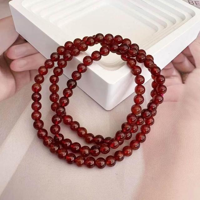Paiya 派亞5MM澄石榴石澄紅石榴冰透乾淨深艷色手鏈手串女人石水晶飾品三圈可當項鍊
