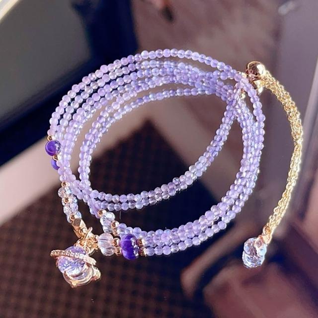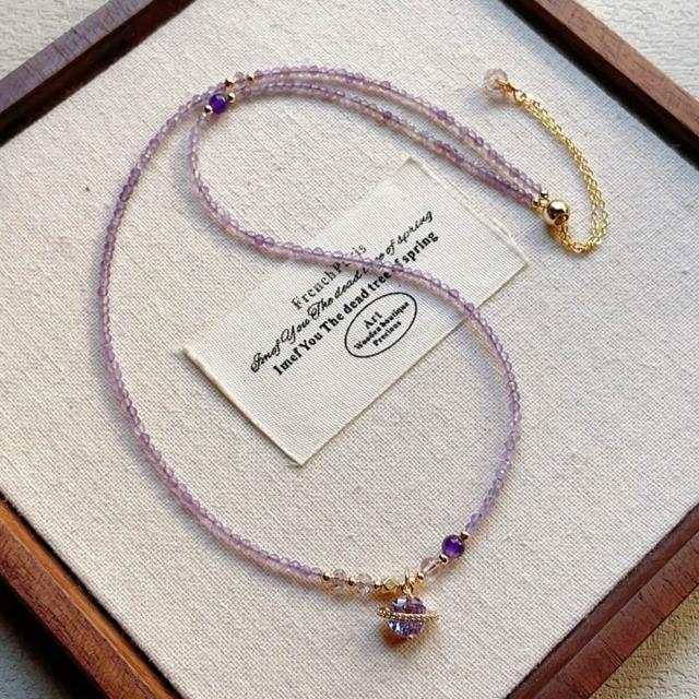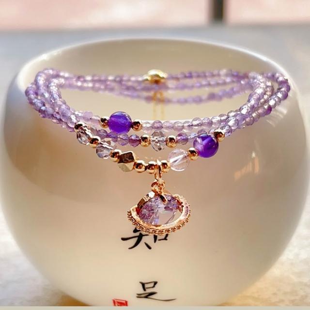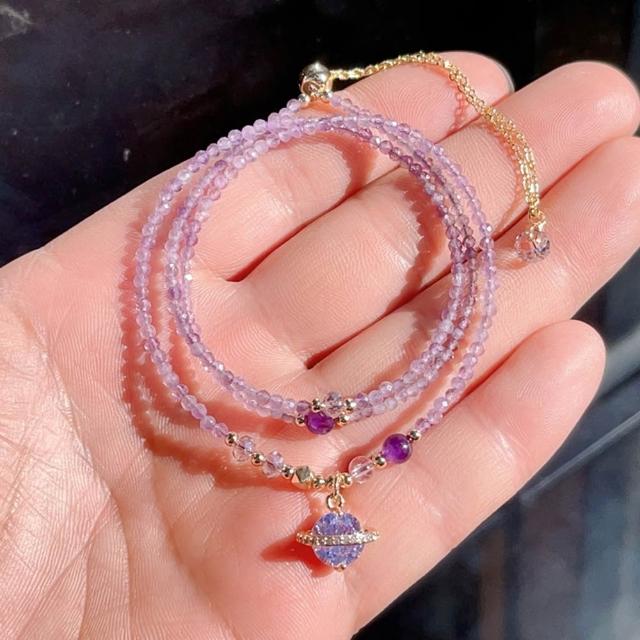 Paiya 派亞切面紫水晶水晶 星球吊墜 原創設計三圈手串手鏈可項鏈兩用款交換禮物/過年送禮