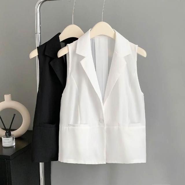 Paiya 派亞外穿無袖西裝夏天小背心時尚馬甲女薄款短款馬夾外搭開衫時尚M-3XL可穿