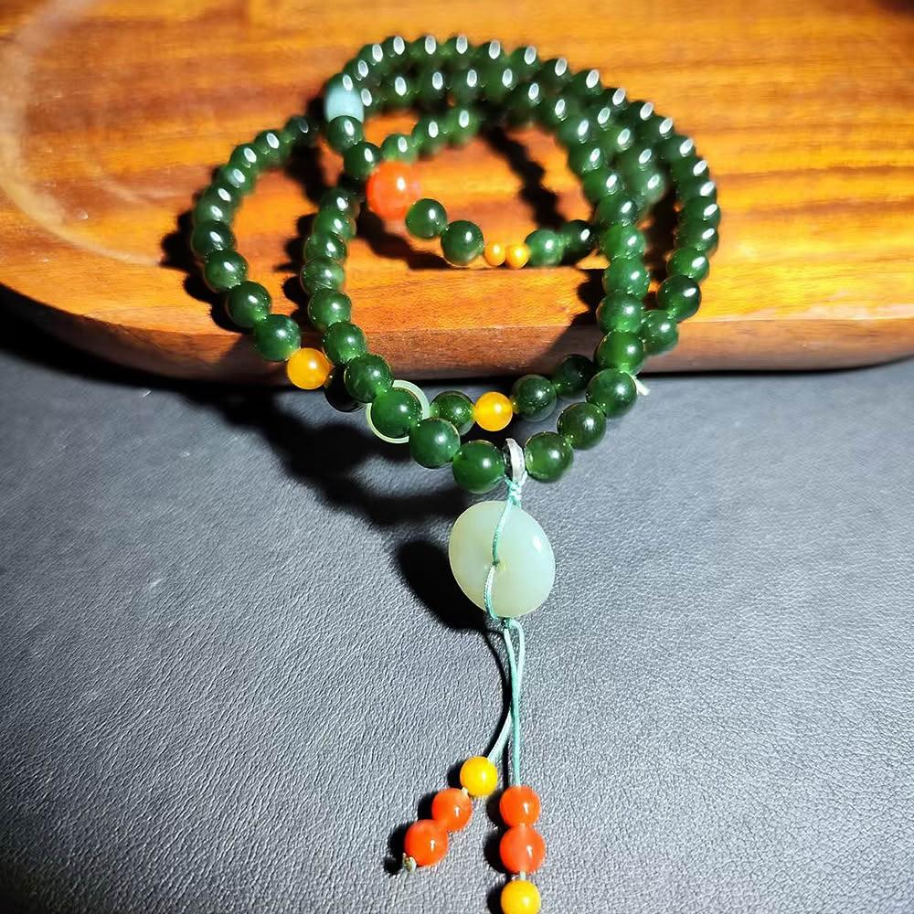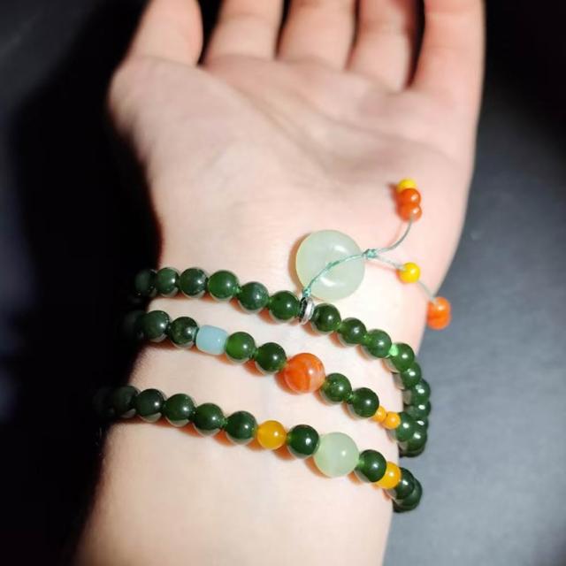 Paiya 派亞原創設計天然俄羅斯老礦6MM和田玉波菜綠碧玉平安扣南紅瑪瑙蜜蠟三圈手鍊可當項鍊台灣有檢測