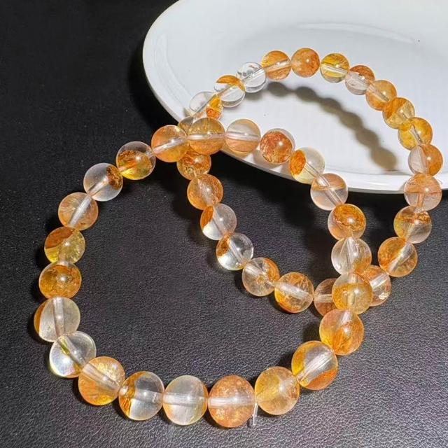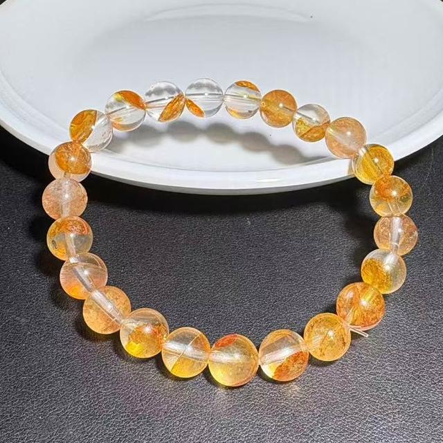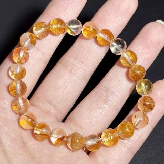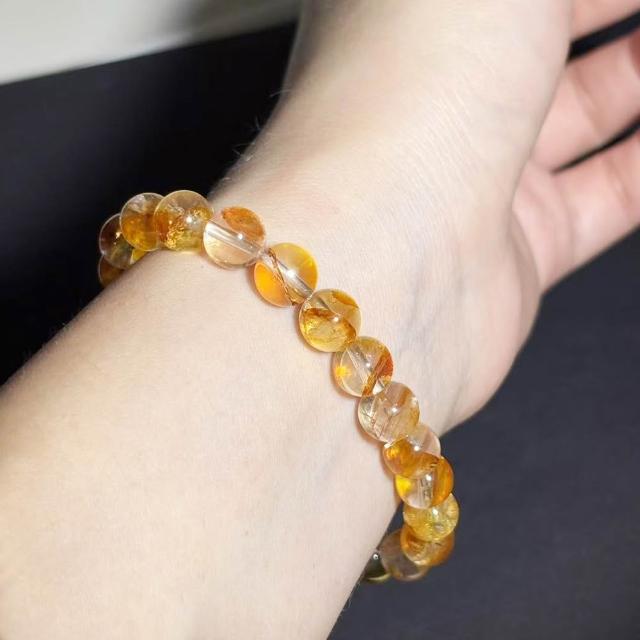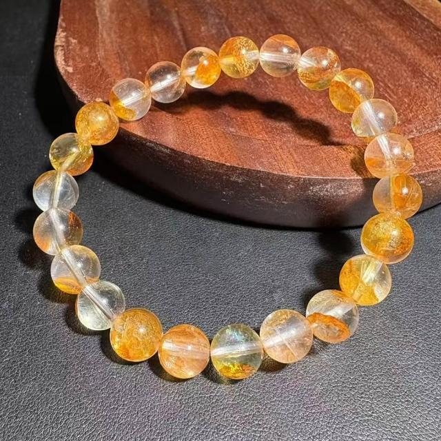 Paiya 派亞天然頂級乾淨透體高冰糖黃金膠花圓珠手串手鏈