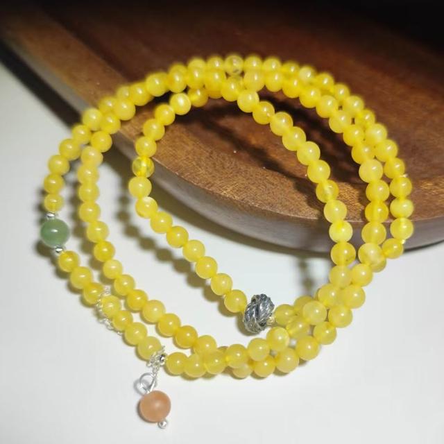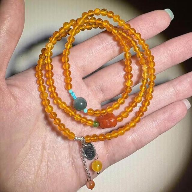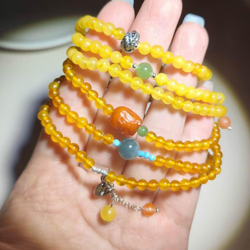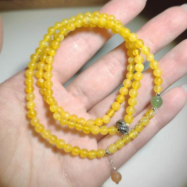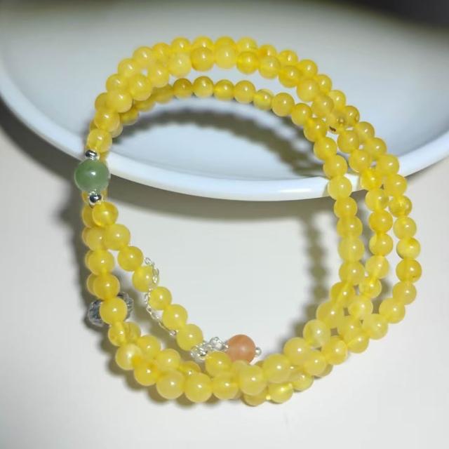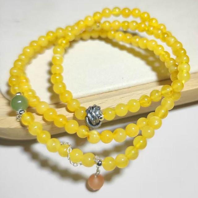 Paiya 派亞原創設計4mm雞油黃蜜蠟項鏈和田玉南紅瑪瑙三圈手串手鏈可當項鍊