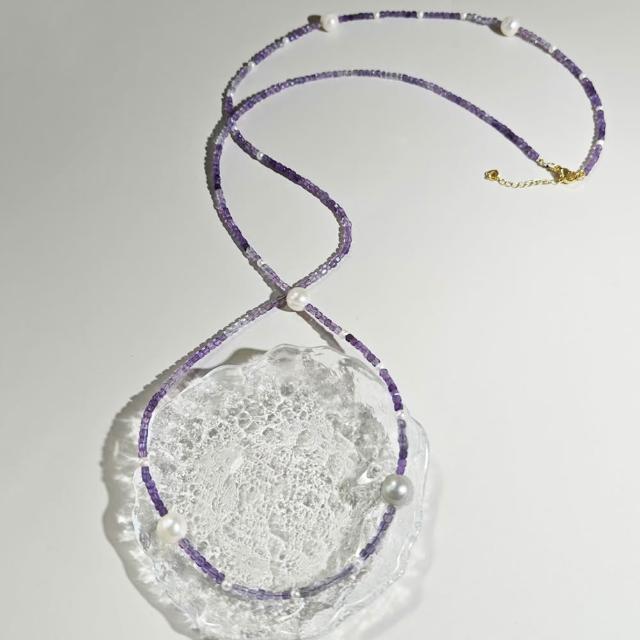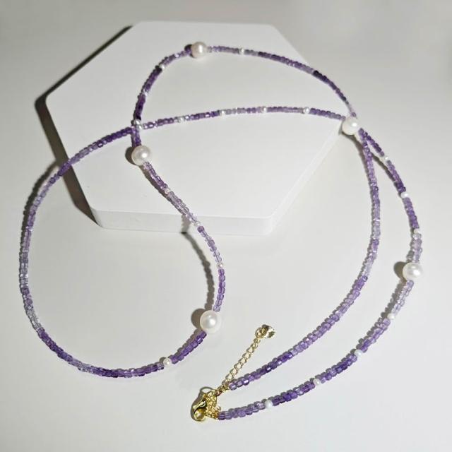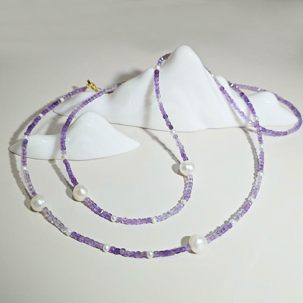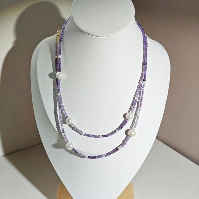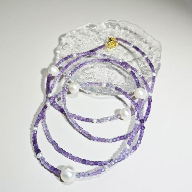Paiya 派亞天然3mm紫水晶8.5mm淡水珍珠多圈項鍊毛衣鏈