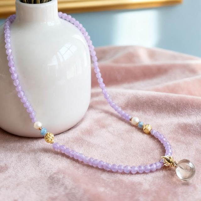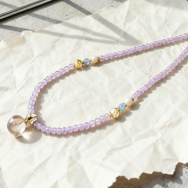 Paiya 派亞原創設計3mm薰衣草紫水晶+12mm白水晶吊墜S925項鏈