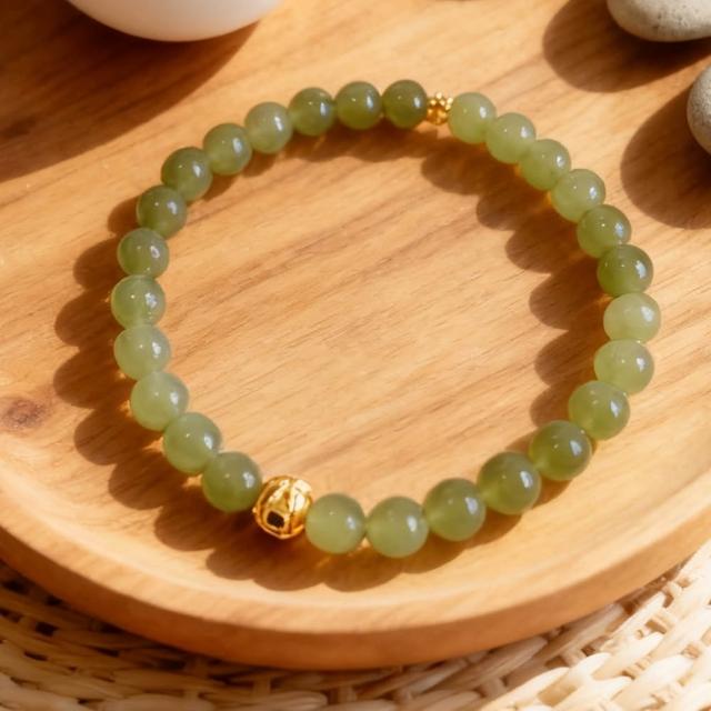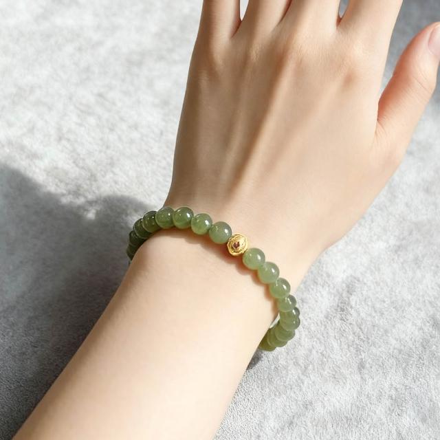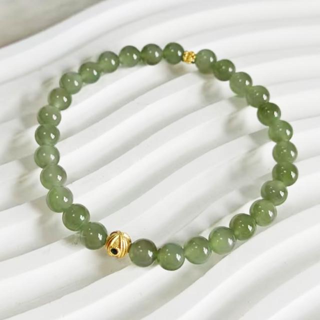 Paiya 派亞6MM烏蘭海蘋果綠碧玉和田玉手串 搭配定制款925銀拉絲貓眼金珠 輕奢百搭