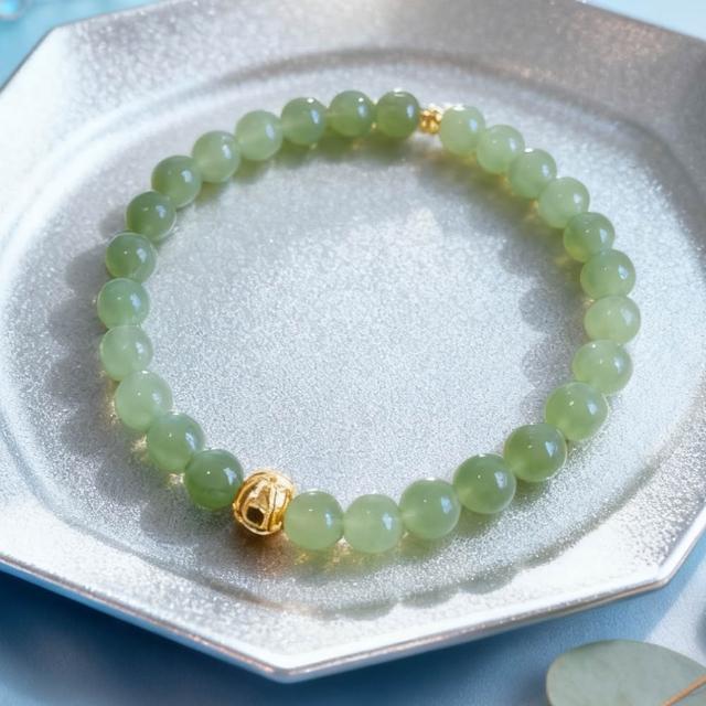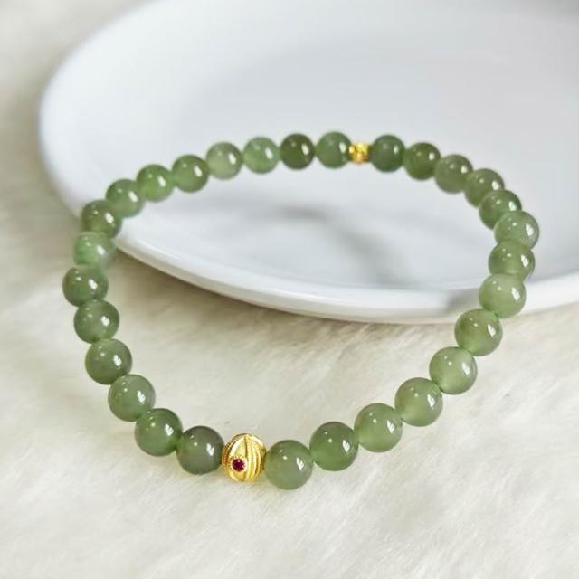 Paiya 派亞6MM烏蘭海蘋果綠碧玉和田玉手串 搭配定制款925銀拉絲貓眼金珠 輕奢百搭