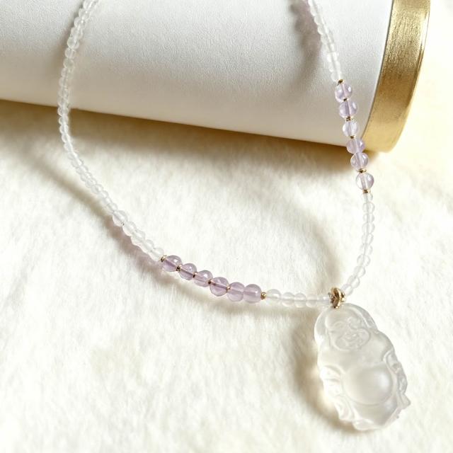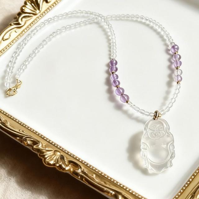 Paiya 派亞3MM白水晶+紫水晶項鍊 X 16X27MM白水晶彌勒佛吊墜