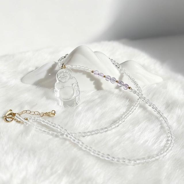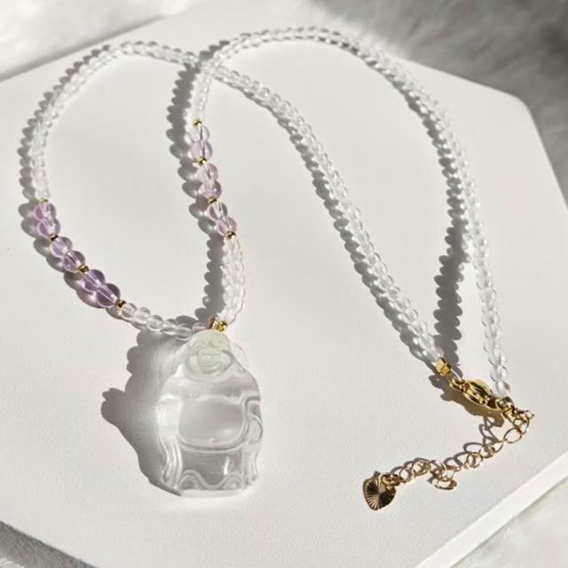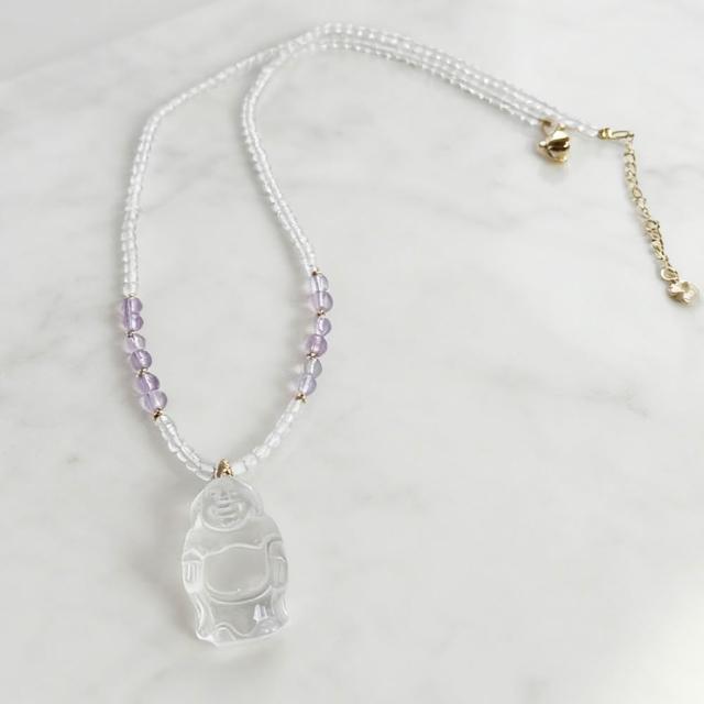 Paiya 派亞3MM白水晶+紫水晶項鍊 X 16X27MM白水晶彌勒佛吊墜