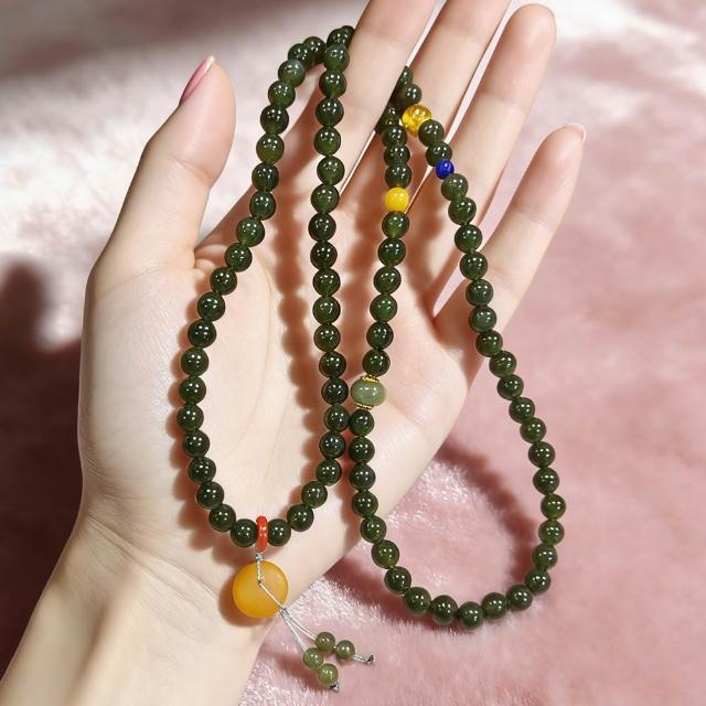 Paiya 派亞「碧玉三疊」6mm新疆和田玉菠菜綠三圈手串/項鍊|一飾兩用·濃翠欲滴 有少量黑點