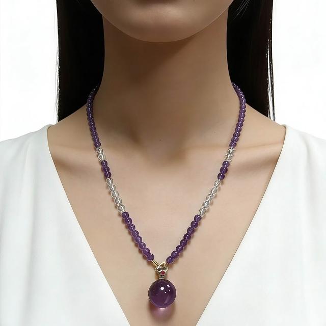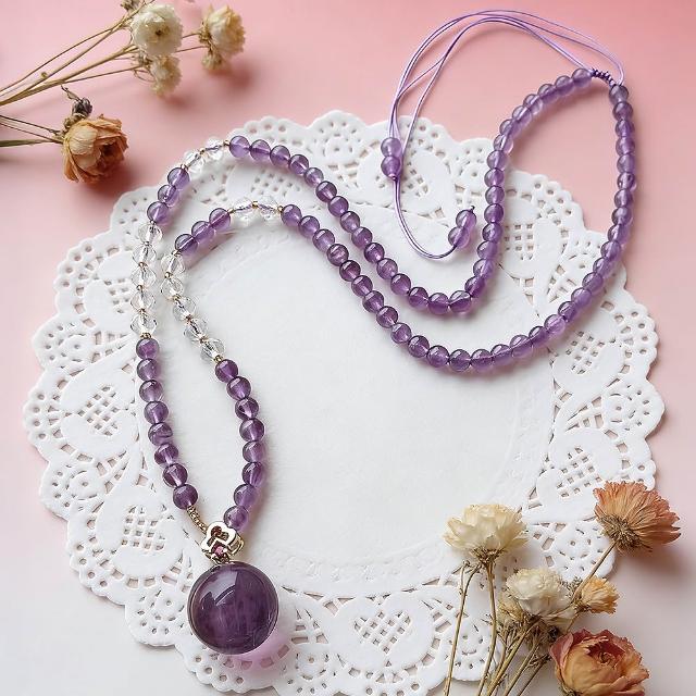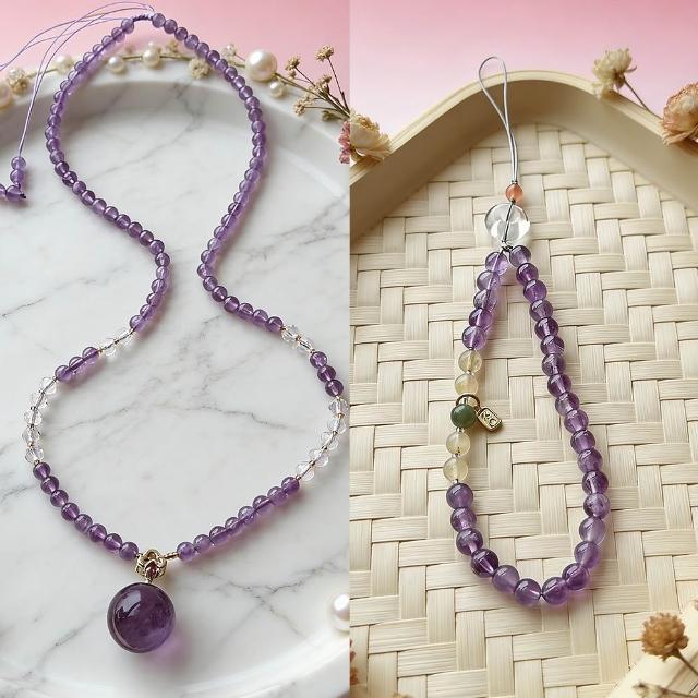 Paiya 派亞5.4mm紫水晶+白水晶+19mm薰衣草吊墜/6MM薰衣草紫水晶手機鍊