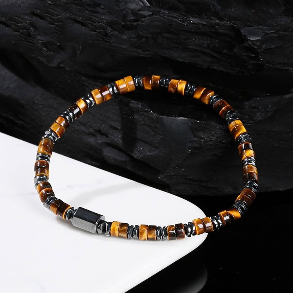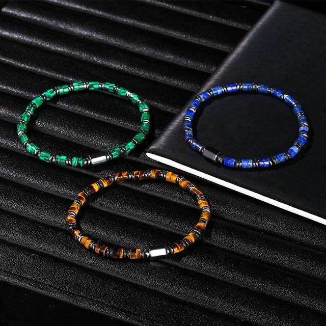 Paiya 派亞4mm天然黃虎眼石黑膽石/孔雀石/青金石混串隔片手鍊