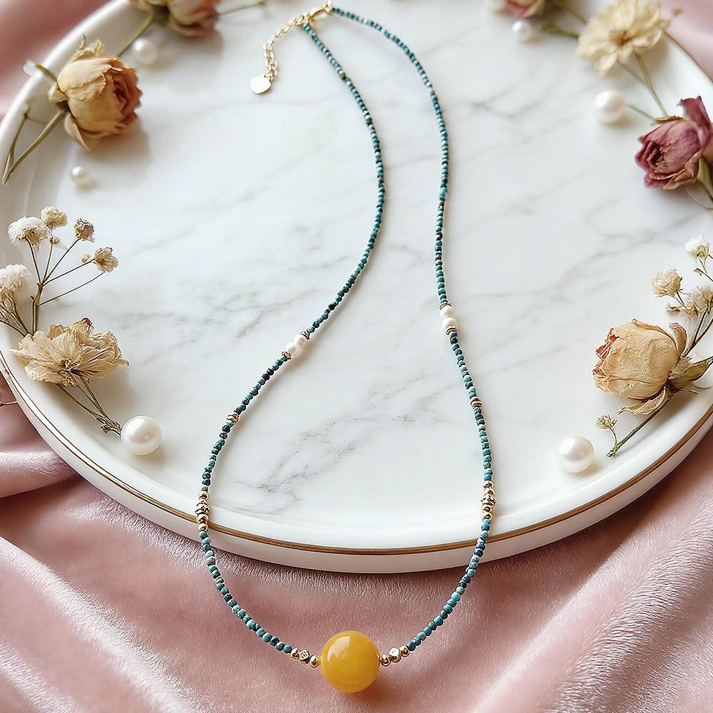 Paiya 派亞2mm綠松石+11.5mm蜜蠟+淡水珍珠項鍊