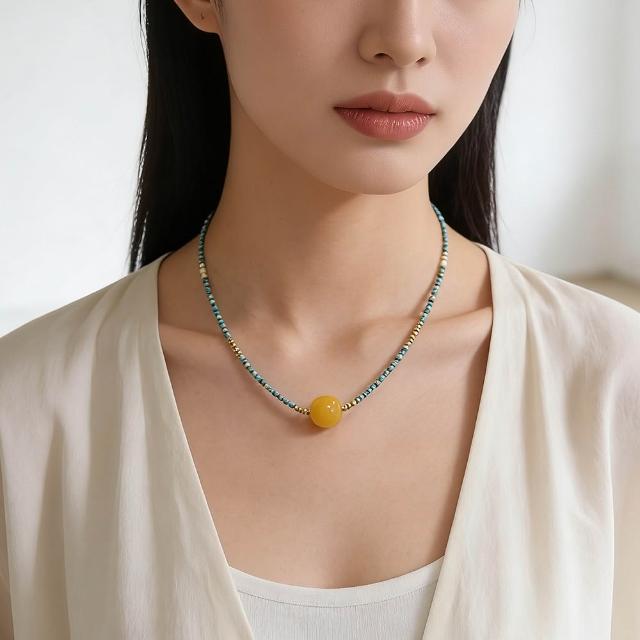 Paiya 派亞2mm綠松石+11.5mm蜜蠟+淡水珍珠項鍊