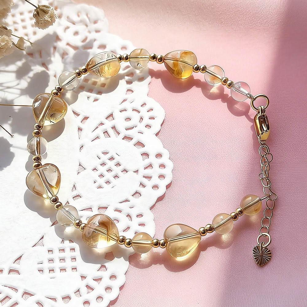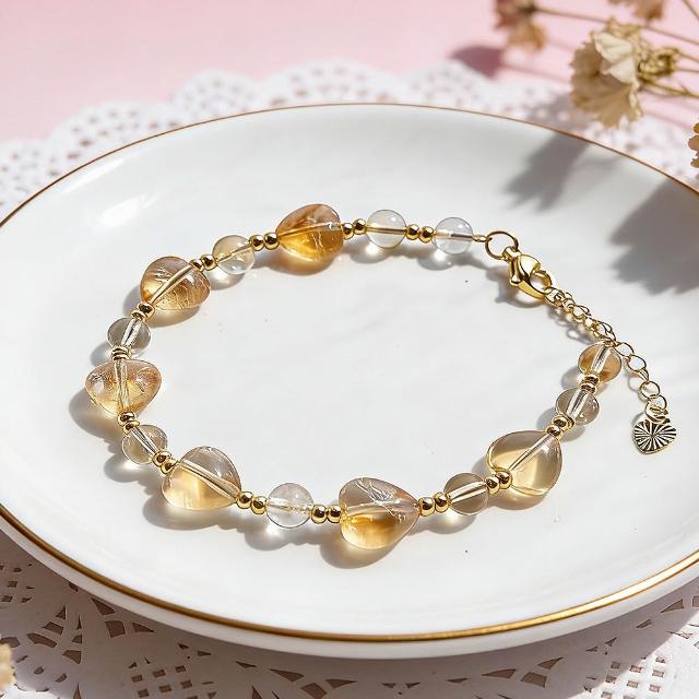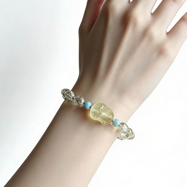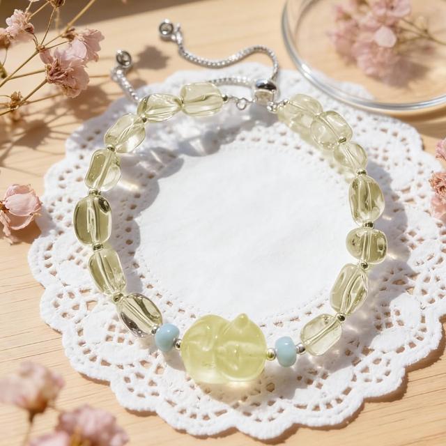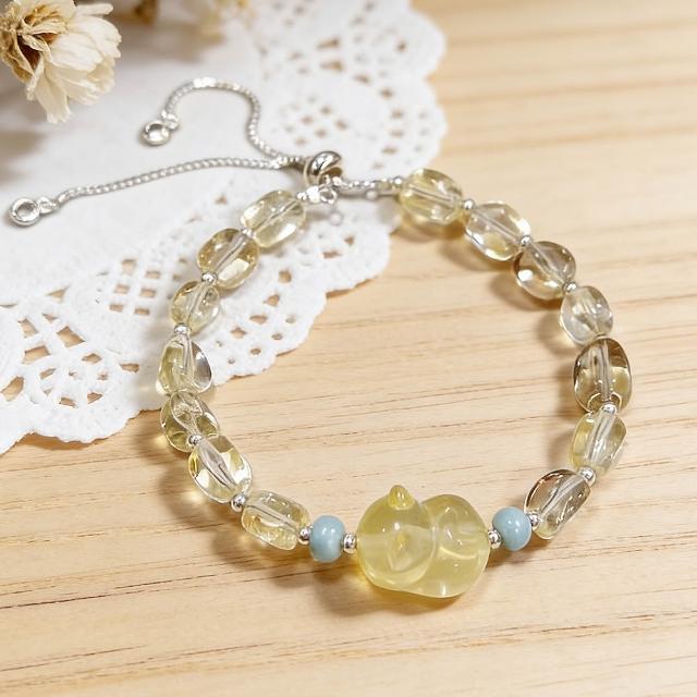 Paiya 派亞檸檬黃水晶隨行+12mm貓咪雕刻件+5mm算盤海文石/9MM黃塔金愛心單圈手串 2選1