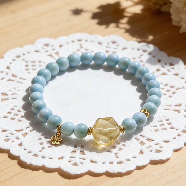 Paiya 派亞5mm天藍海紋石+切面黃水晶手串 賣完不補