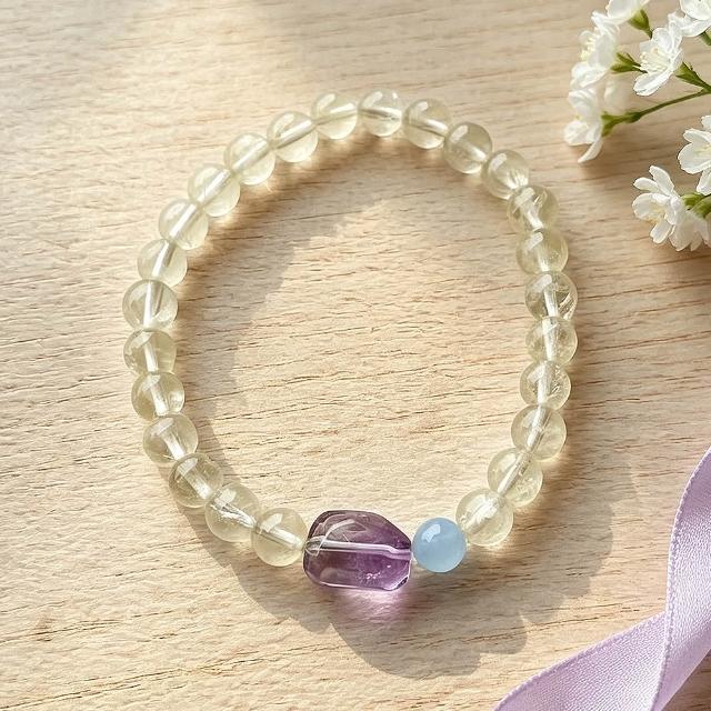 Paiya 派亞5mm玻利維亞紫水晶+白水晶蓮花墜三圈手鍊可當項鍊/6MM檸檬黃水晶+玻紫唐八陵+海藍寶單圈手串