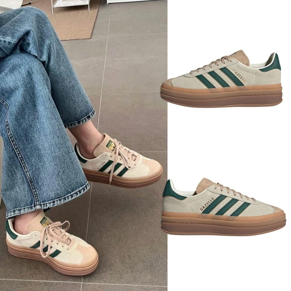 adidas 愛迪達ADIDAS ORIGINALS GAZELLE BOLD 女 白綠 厚底 增高 拼接 卡其 女 休閒鞋 ID7056