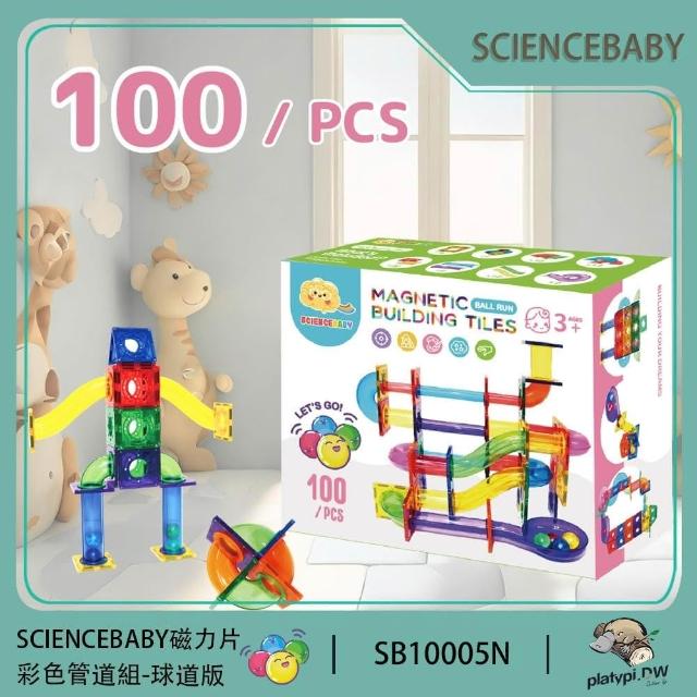 ScienceBaby100片球道組 滾球組 發光球 繽紛色彩管道組 建構式玩具 雪鑽磁力片picasso MNTL拓荒者相容 建構式玩具