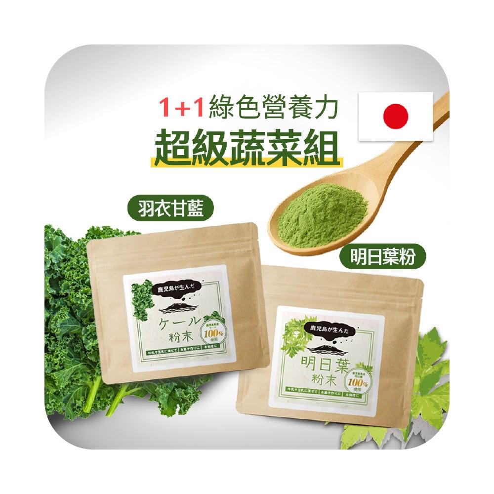 ogaland1+1綠色營養力超級蔬菜組(羽衣甘藍粉100g+明日葉粉100g) 日本鹿兒島產 天然無添加 青汁 綠拿鐵 膳食纖維