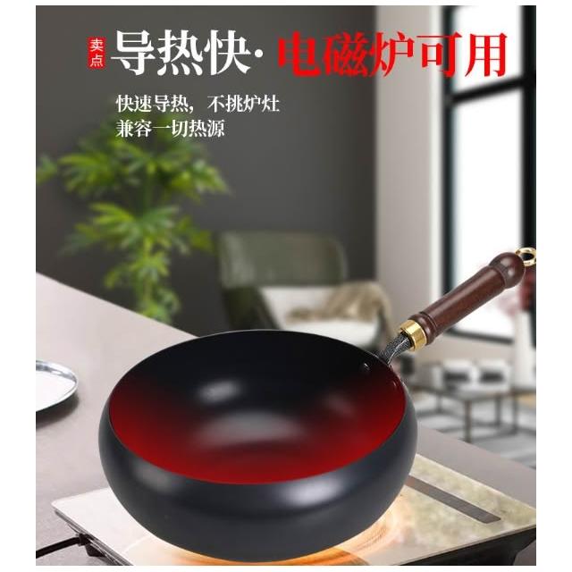 丘大肚鐵鍋【默朵購物大肚鍋 無塗層不沾鍋 平底鍋 炒鍋 手工鍛造鑄鐵鍋 不挑爐灶 大肚炒鍋 純鐵大肚鍋