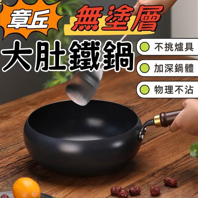 丘大肚鐵鍋【默朵購物大肚鍋 無塗層不沾鍋 平底鍋 炒鍋 手工鍛造鑄鐵鍋 不挑爐灶 大肚炒鍋 純鐵大肚鍋