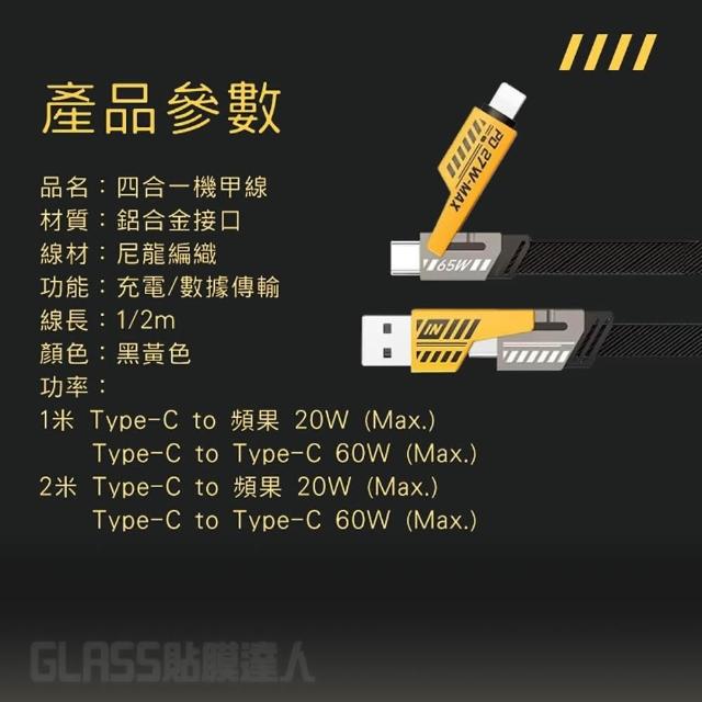 貼膜達人四合一快充線 機甲充電線 PD快充(適用 蘋果 iPhone i16 15 14 13 12 三星 OPPO 安卓)