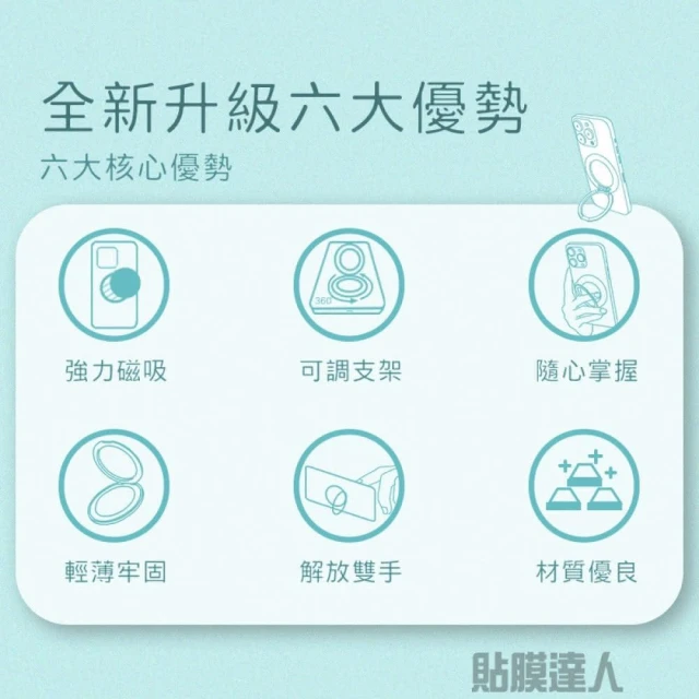 貼膜達人磁吸指環手機支架 合金款 旋轉磁吸支架 手機架(適用全型號)