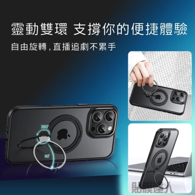 貼膜達人Apple 360度 雙環磁吸 支架手機殼 防摔殼適用 iPhone 17 16 15 14 13 Pro Max