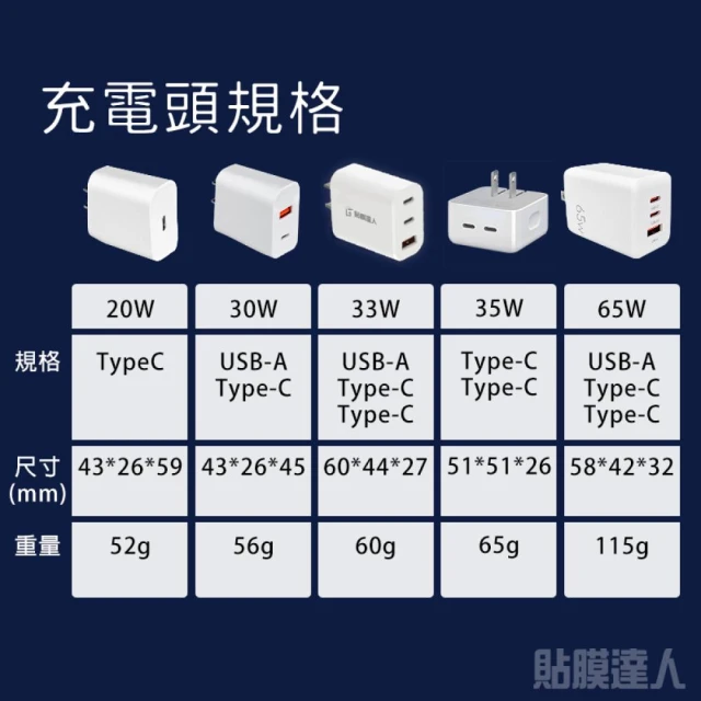 貼膜達人氮化鎵 GaN 多孔 充電頭 豆腐頭 PD 快充頭 QC 充電器 65/35/33/30/20W(適用 USB-C/ USB-A)