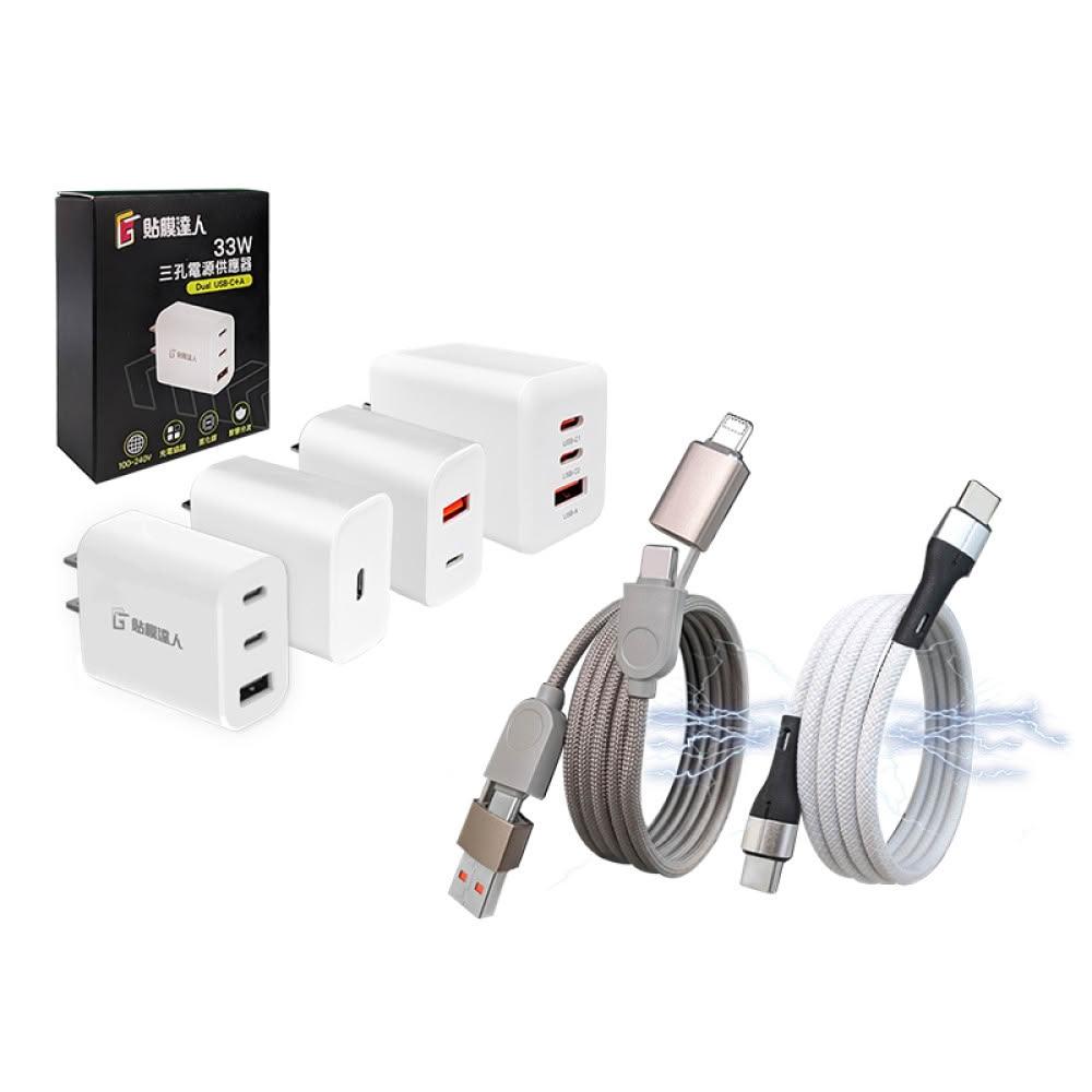 貼膜達人快速充電組 氮化鎵 GaN 多孔充電頭 + 磁吸編織充電線