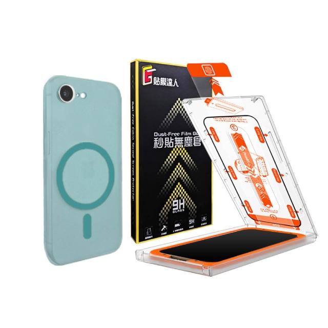 貼膜達人iPhone 16e 磁吸防護組 秒貼無塵艙亮面 + 超薄型磁吸冰霧殼 透藍 手機殼